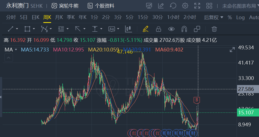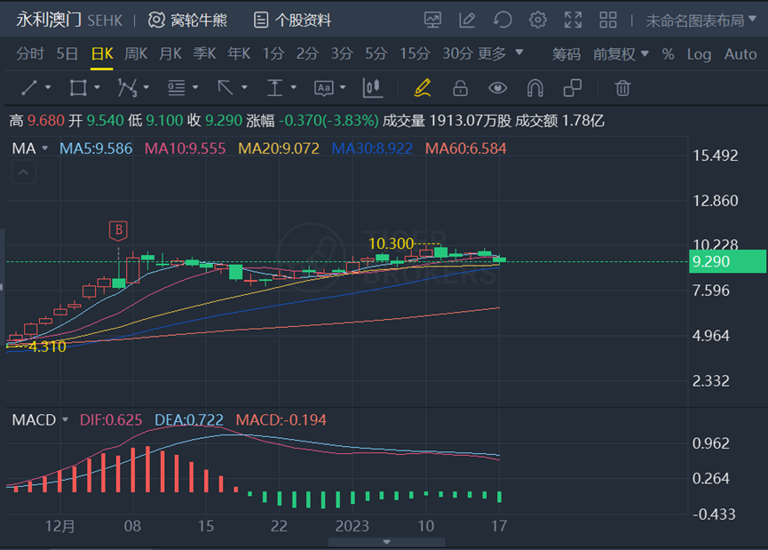 此外,永利$永利澳门(01128)$ 和银河$银河娱乐(00027)$ 都出现了顶背离现象。