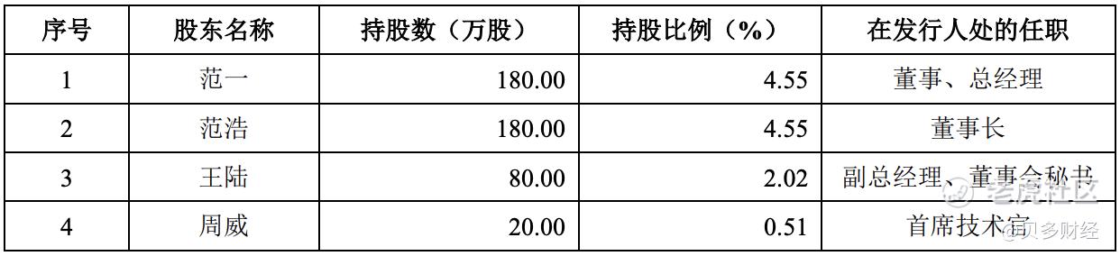 其中,范浩为茂莱光学董事长,直接持股比例为4.55%;范一为该公司董事、总经理,直接持股4.55%。同时,茂莱光学副总经理、董事会秘书王陆直接持股2.02%,首席技术官周威直接持股0.51%。