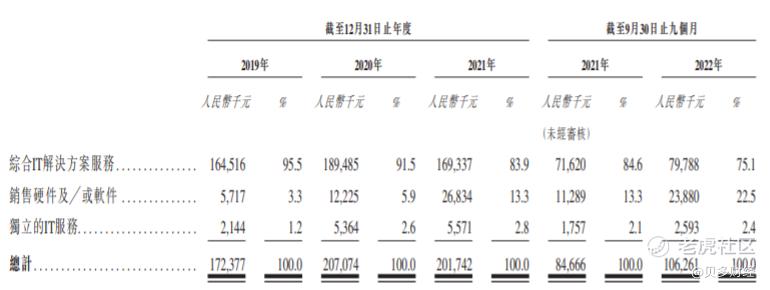 截至2019年、2020年、2021年和2022年前九个月,涉及迈越科技自研产品的综合IT解决方案项目产生的收入分别为2360万元、2220万元、3760万元和2100万元,占该公司同期总收入的14.3%、11.7%、22.2%和26.4%。