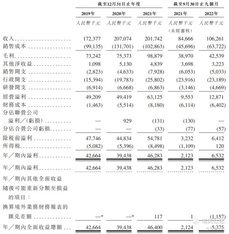 2019年、2020年、2021年和2022年前9个月,迈越科技的收入分别为1.72亿元、2.07亿元和2.02亿元和1.06亿元,期内溢利(净利润)分别为4266.40万元、3943.80万元、4628.30万元和653.20万元。