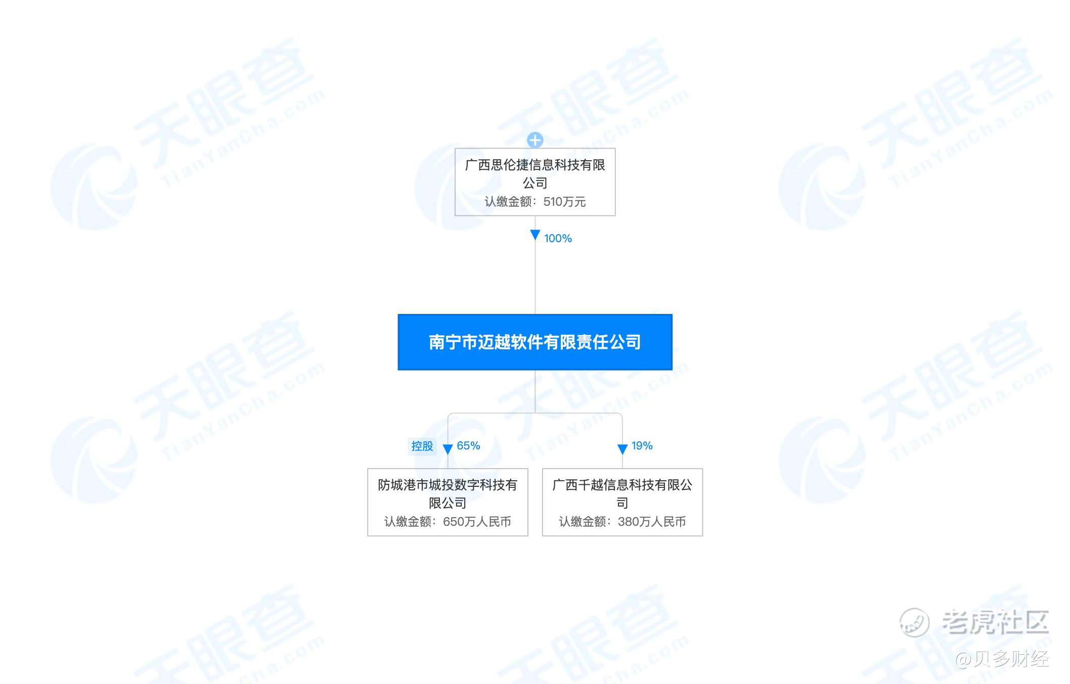 天眼查信息显示,迈越科技成立于2019年,其历史可以追溯到2003年,该公司的第一间运营附属公司南宁迈越成立。目前,迈越科技的注册资本为510万元,法定代表人为李常青,由广西思伦捷信息科技有限公司全资控股。