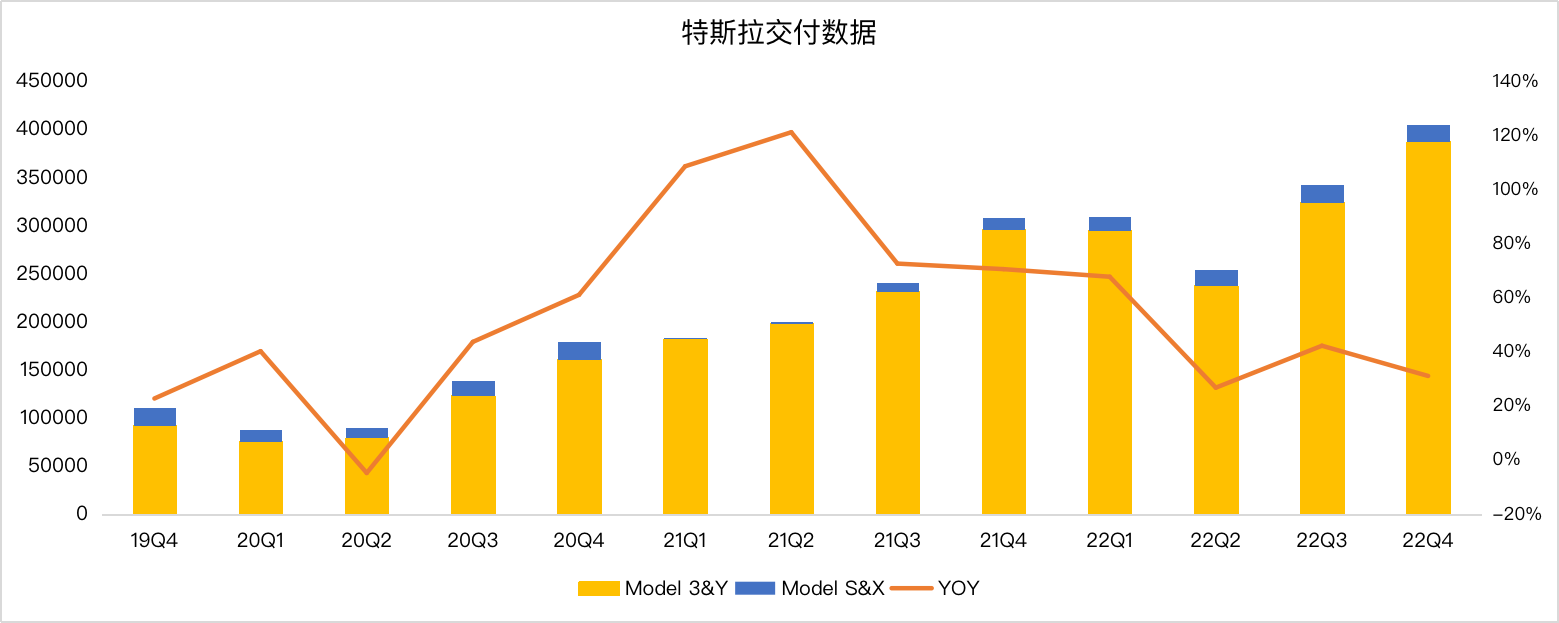 四季度营业收入243.18亿美元,同比增长37%,连续第二个季度刷新一季度所创的季度营收新高,高于彭博一致预期的241.8亿美元。第四季度,特斯拉生产了超过43.9万辆汽车,交付了超过40.5万辆汽车。2022年,汽车交付量同比增长40%,至131万辆,产量同比增长47%。说真的,虽然交付数据是个明牌,但特斯拉这次财报真的不好预测的。