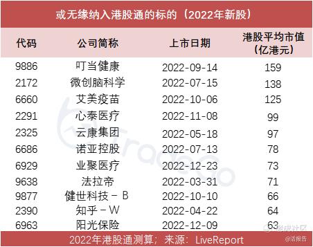 二、港股通体检:15只2022年上市新股有望纳入港股通