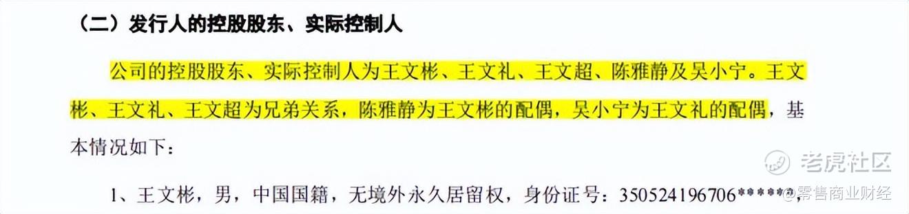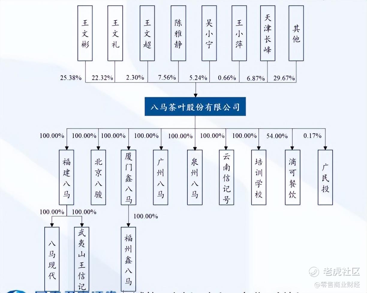 八马茶业的实际控制人为王氏三兄弟——王文彬、王文礼和王文超。陈雅静和吴小宁分别为为王文彬和王文礼的配偶,在本次发行前,这五人共计持有公司62.80%的股份。