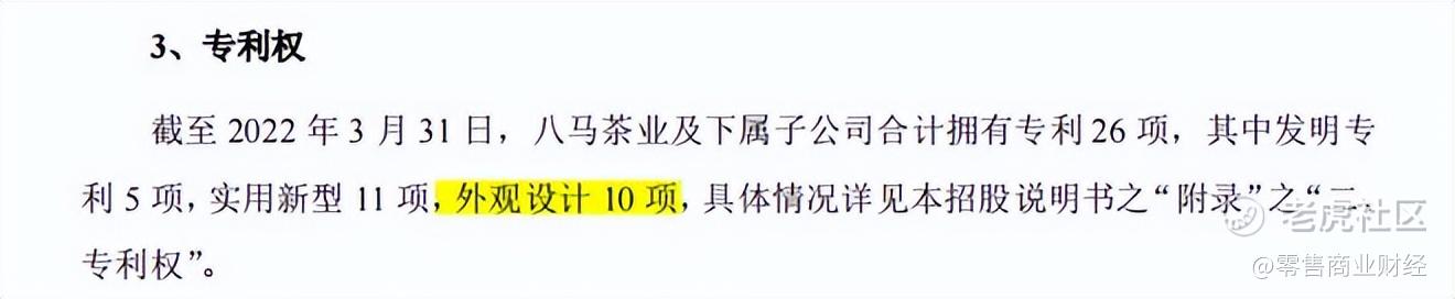 细看研发费用的构成比例不难发现,其研发设计费用占比接近一半。再结合八马茶业拥有的26项专利权,仅外观设计就占了10项。