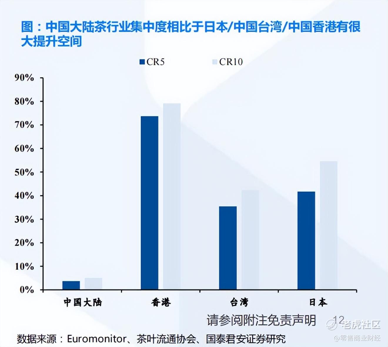在我国千亿级的茶叶市场中,规模虽大但是品牌集中度相当低,远低于日本、中国香港等同期水平,竞争格局相当分散。
