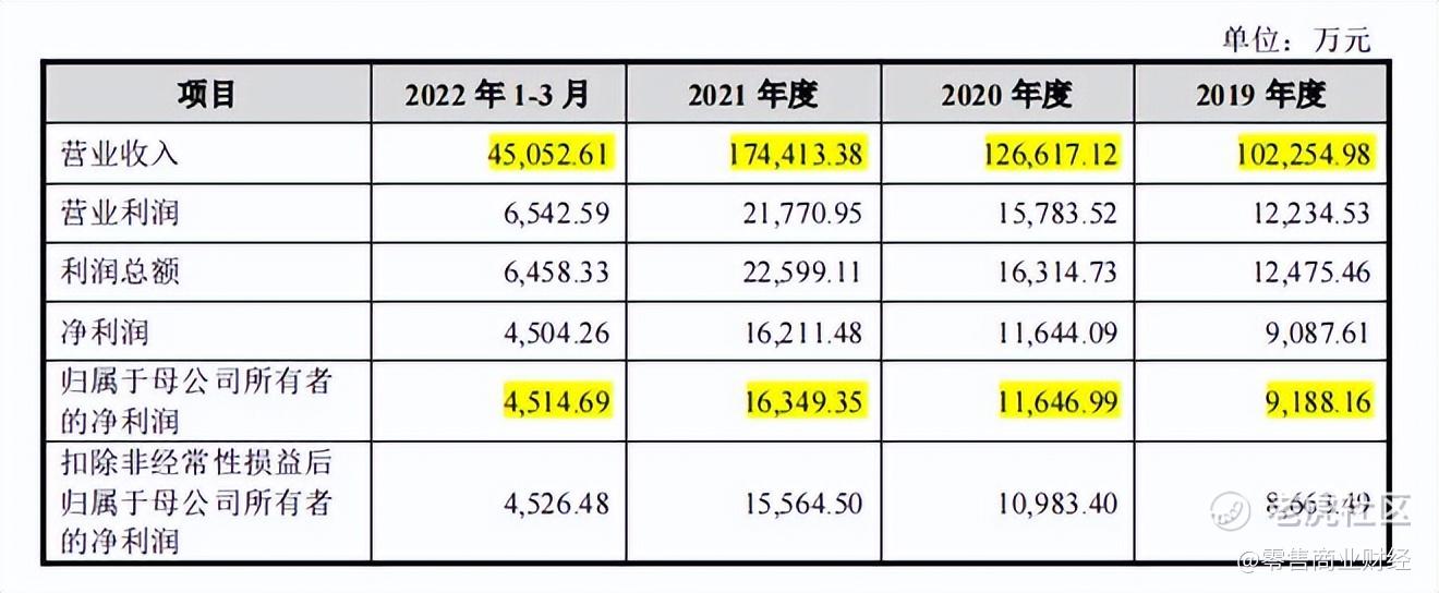 八马茶业最新招股书显示,2019年至2022年第一季度,公司实现营业收入分别为10.23亿元、12.66亿元、17.44亿元、4.51亿元,归母净利润分别为9188.16万元、1.16亿元、1.63亿元和4514.6万元。