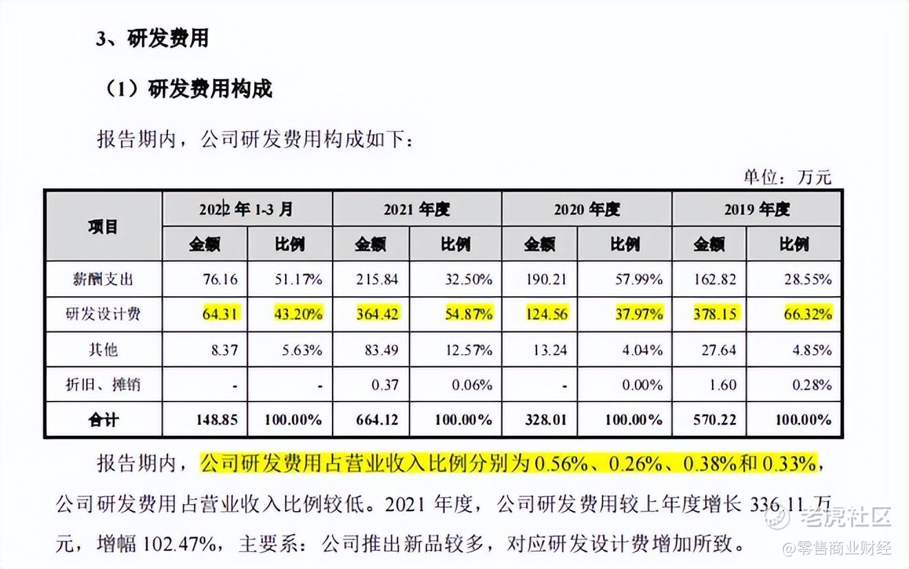 从2019年到2022年第一季度,八马茶业研发投入分别为570.22万元、328.01万元、664.12万元以及148.85万元,占当期营收比例分别为0.56%、0.26%、0.38%和0.33%。