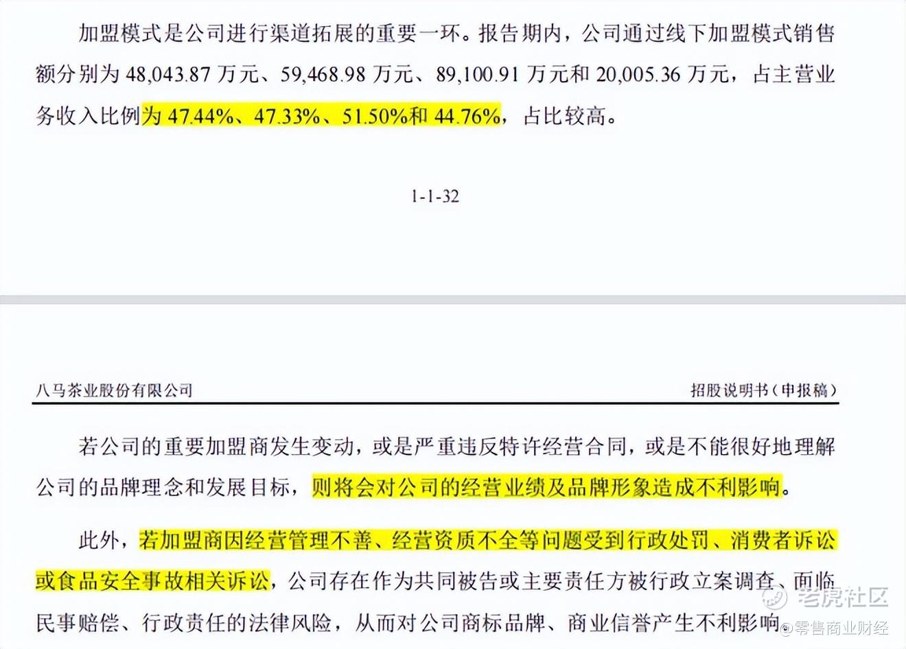 对此,八马茶业也在招股书中坦言,占比较高的加盟商也将会是风险之一,其中因加盟商管理不善或者经营资质不全导致的消费者诉讼或食品安全事故,将会对公司品牌、商业信誉产生不利影响。