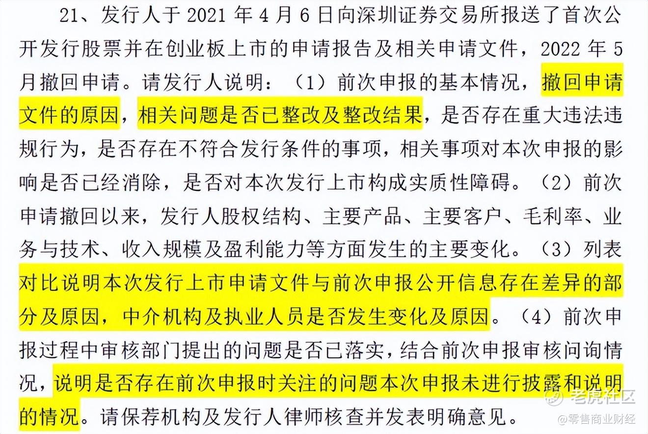 反馈意见文件中,证监会针对在2022年9月八马茶业披露的招股书提出了46个问题,并且关于八马茶业此前在22年4月冲刺创业板IPO后却撤单一事,询问了具体原因以及问题整改结果等四个具体问题。