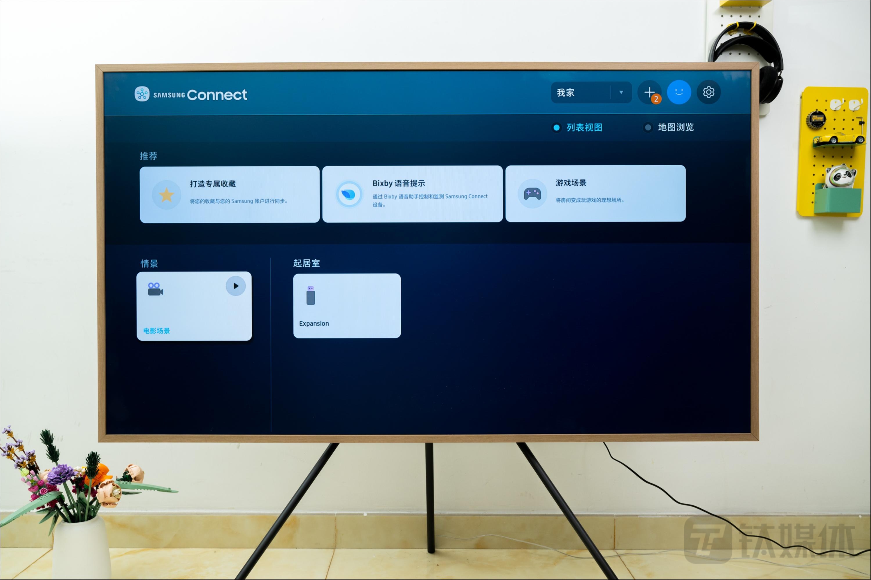 作为客厅中的大屏中心,三星画壁艺术电视也加入了不少与智能家居联动控制的场景化功能,在左侧的智能家庭功能板块,可以直接添加场景以及场景内的各类智能产品,可以在使用中直接进行模式切换,操作流程便捷轻松。