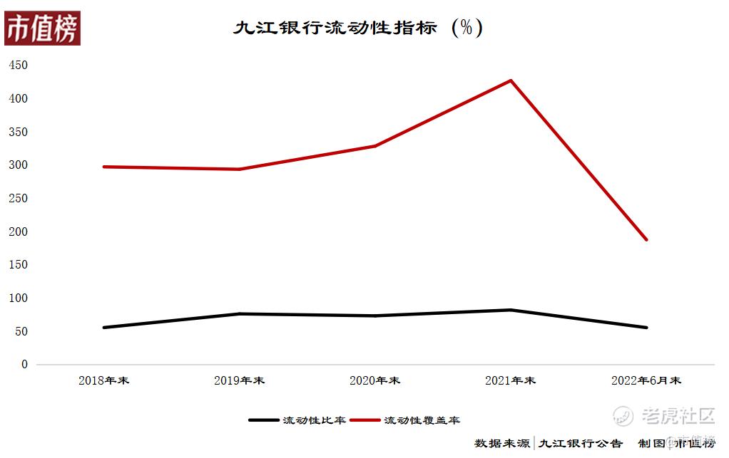 2021年末和2022年6月末,九江银行的流动性覆盖率从426.31%骤降至不到190%。流动性压力可见一斑。