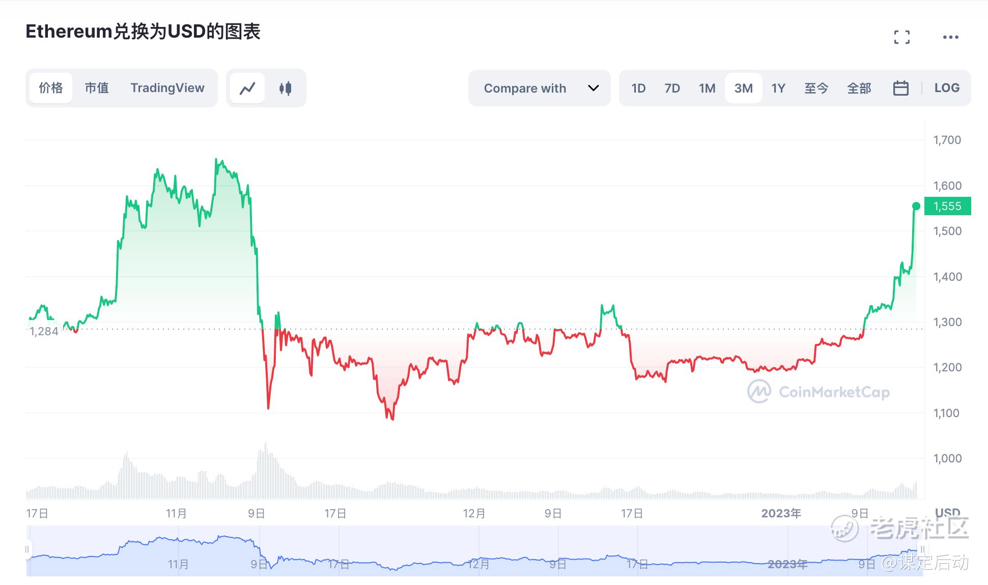 12月份CPI公布以后,美联储降息预期增加,压抑已久的加密货币迎来了一波久违的上涨。以太坊在一个星期里涨了近20%。