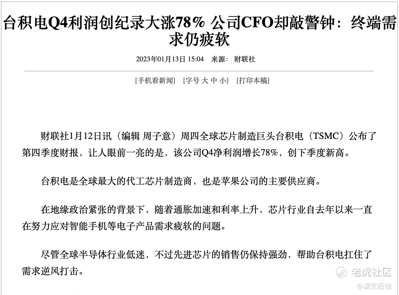 这个星期公布的台积电的财报超预期是否预示这半导体行业的春天又到了,这需要更多半导体公司财报的验证。