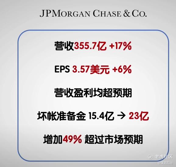 星期五公布的美国三大银行的财报显示美国底层经济面仍然十分坚挺,信用卡消费依然旺盛,但是三家银行都对经济有比较悲观的预期而提高了坏账准备金。