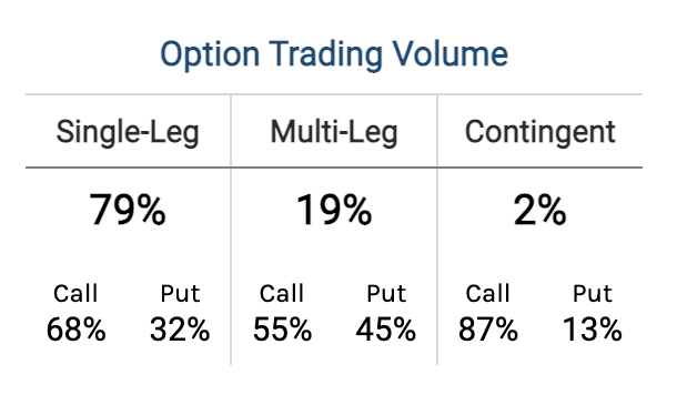策略方向,89%的投资者选择单腿期权策略,11%的投资者选择多腿策略,单腿策略中看涨期权比例是看跌期权的两倍。
