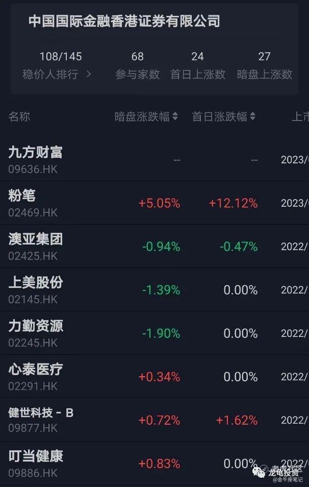 九方财富本次由中金独家保荐,稳价人亦由中金担任,中金最近稳价的项目都比较稳,保荐的项目也不错。