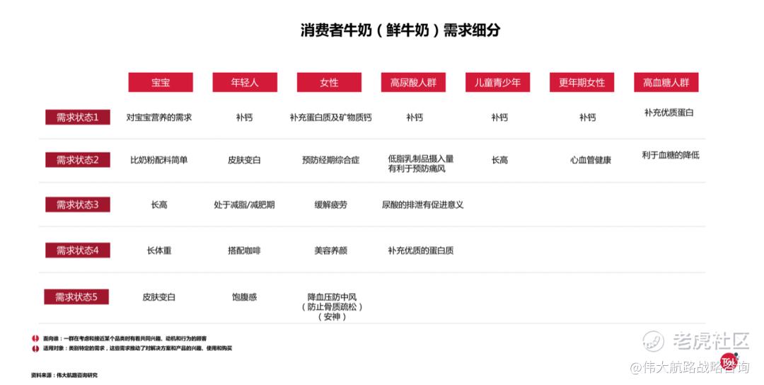 下图为我们对喝牛奶的不同人群细分需求的研究示例。
