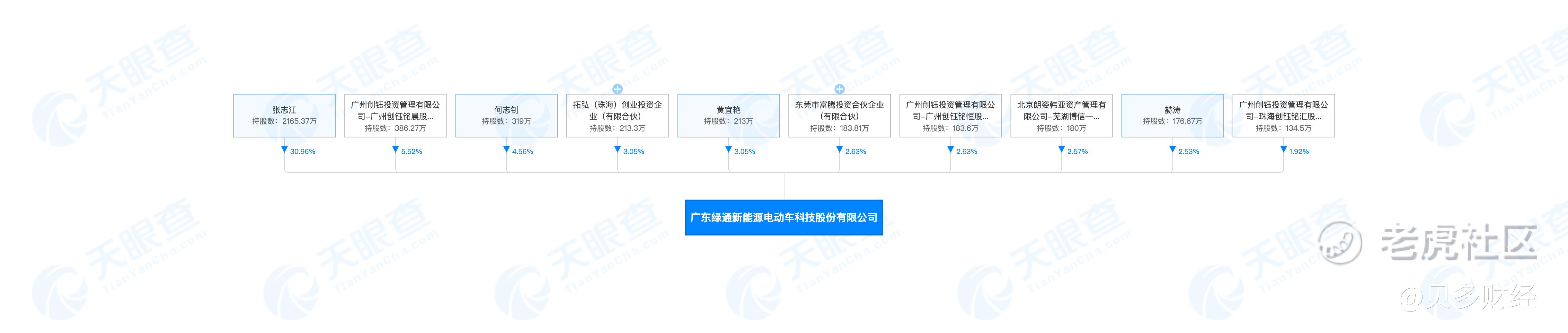 而天眼查信息显示,绿通科技成立于2004年,前称为东莞市绿通高尔夫观光车有限公司。目前,该公司的注册资本为5244.3799万元,法定代表人为5244.3799万元,股东包括张志江、创钰投资、何志钊等。