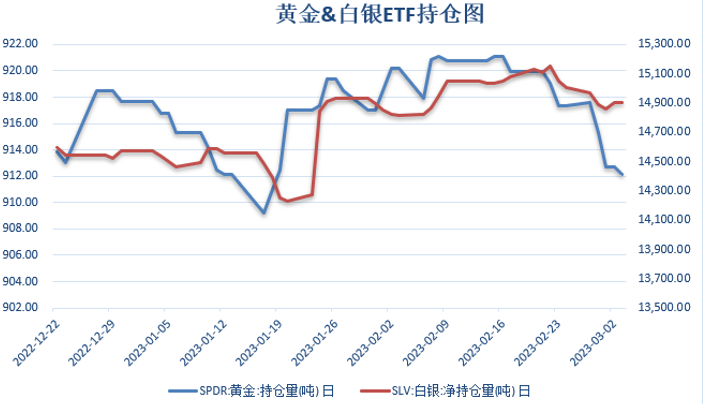 SPDR Gold Trust截至3月3日,黄金ETF持仓量为2932.54万盎司,周减少16.7万盎司。同时,Shares Silver Trust白银ETF持仓量为47906.32万盎司,周减少33.66万盎司。