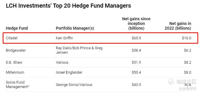 值得一提的是,城堡对冲基金在2022年底登顶史上最赚钱的对冲基金排行榜,累计费后收益正式超越桥水,终结了桥水连续7年的霸主地位。