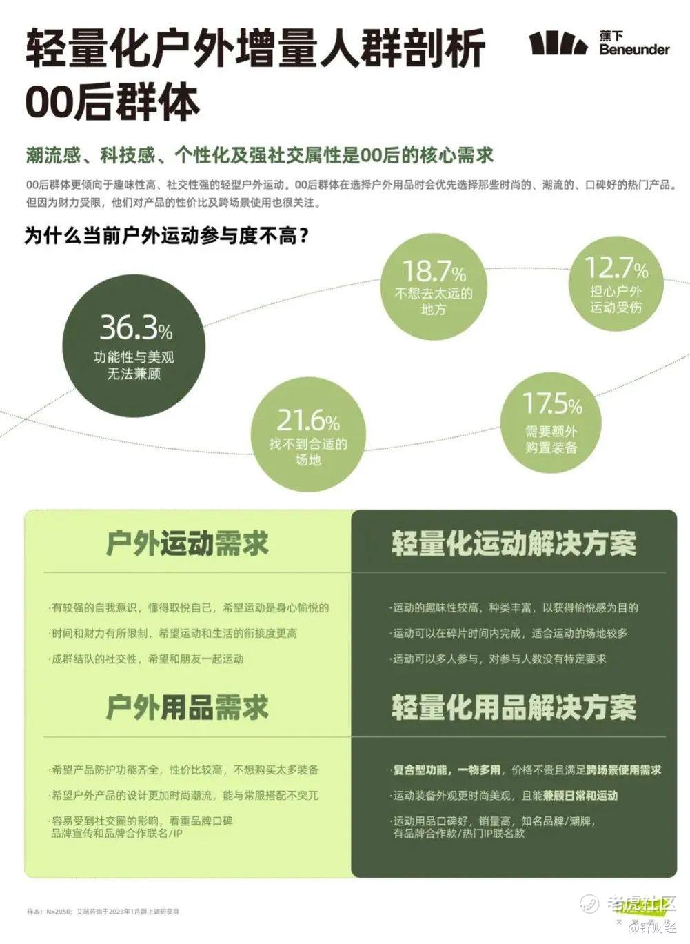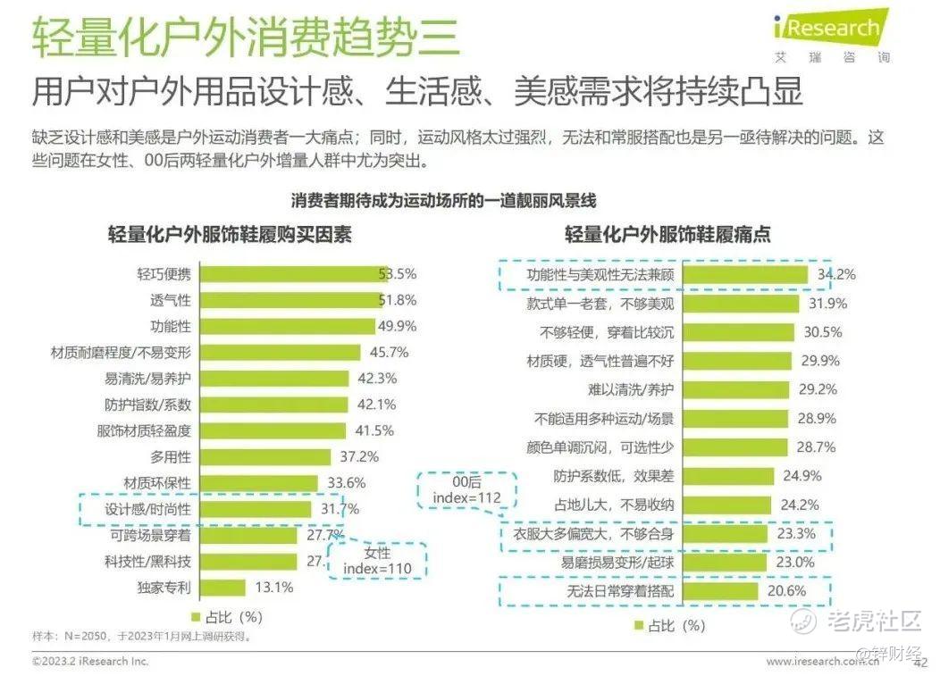 而在细分人群上,《白皮书》数据表明,如今的00后等年轻群体在选择户外用品时,会优先选择那些时尚的、潮流的、口碑好的热门产品。但因为财力受限,他们对产品的性价比及跨场景使用也很关注。