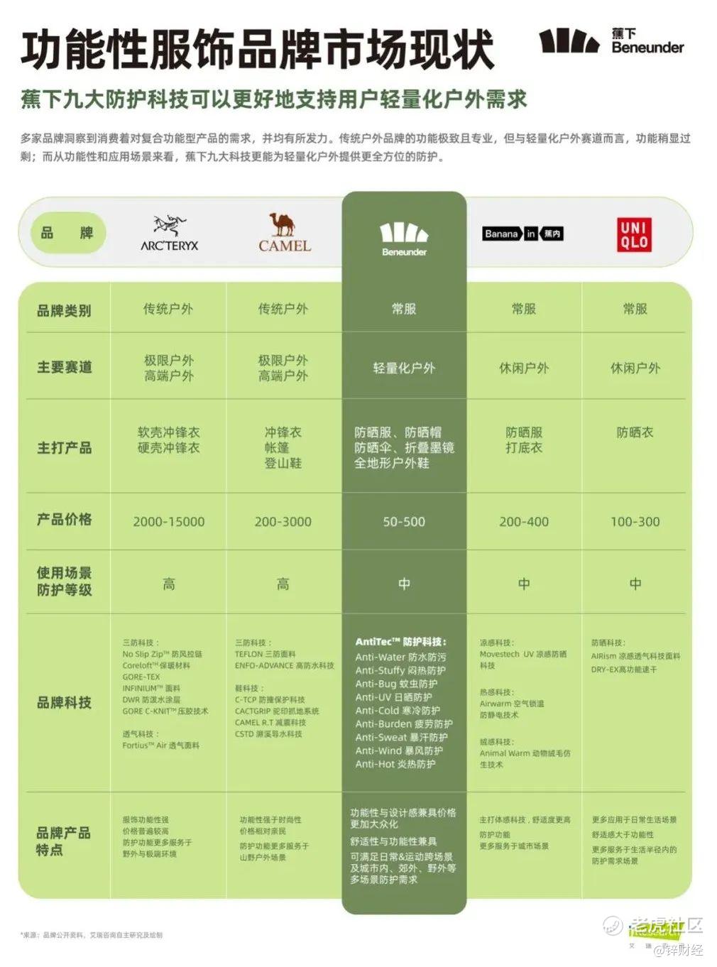 与其他品牌相比,蕉下九大防护科技能恰到好处地为轻量化户外提供更全方位的防护,从而构建起自身行业壁垒。