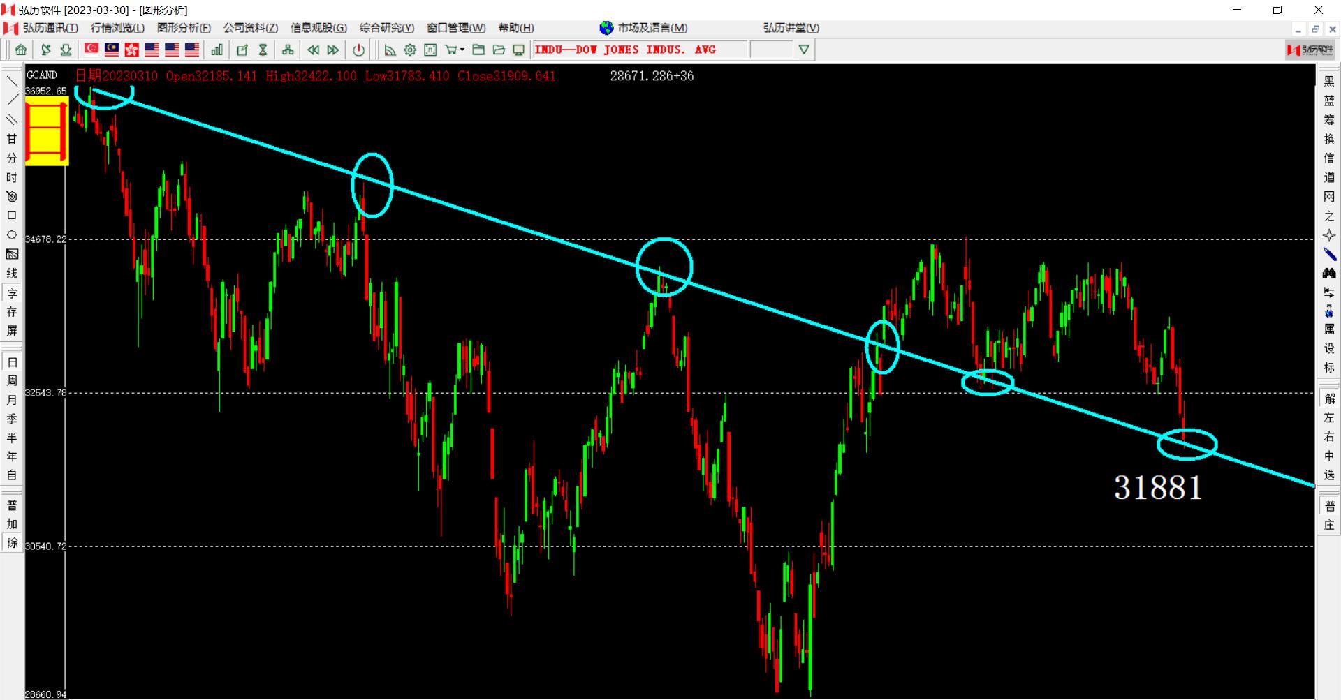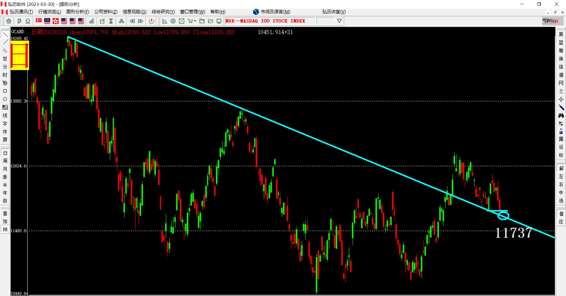 从上图来看哪只截止到本周已经跌到3月2号11830的前低点,下周一是非常重要的一天,若能止跌收阳有望反弹,一旦跌破就打开了更大的下降空间,下一个目标位就是字去年下跌以来的一条长期下降趋势线股价离着这条线还有一点点距离,下周也要挑战此位11640,若能受到支撑止跌,那短线有望反弹,若止跌跌破这个长期下降趋势线,就意味着再次沦为下降趋势,未来走势不容乐观。