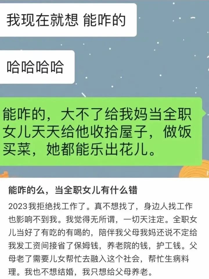 因为有父母兜底,很多全职儿女也不太为求职或者生存焦虑。