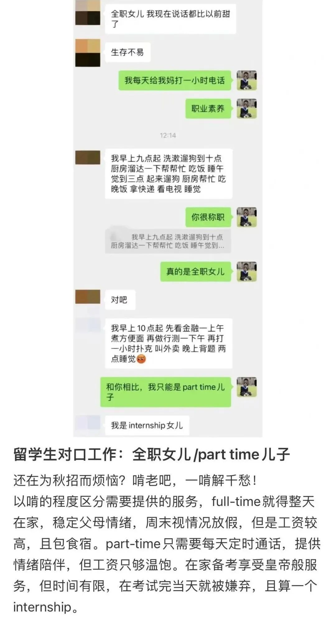 所以说,并不是所有人都有条件去当“全职儿女”。因此在经济基础好的留学家庭里更为常见。