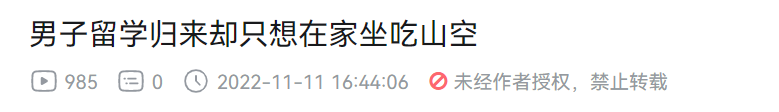 你曾向身边亲戚、同事、朋友、邻居夸耀的,花费百万名校留学回来的孩子、已经成年的贴心小棉袄,无业在家。