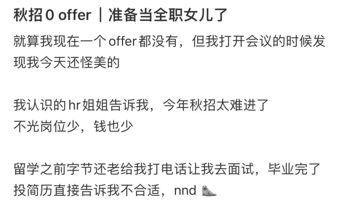 也有很多回国的留学生,在网上发帖说“找不到工作”、“只有我没offer吗”……