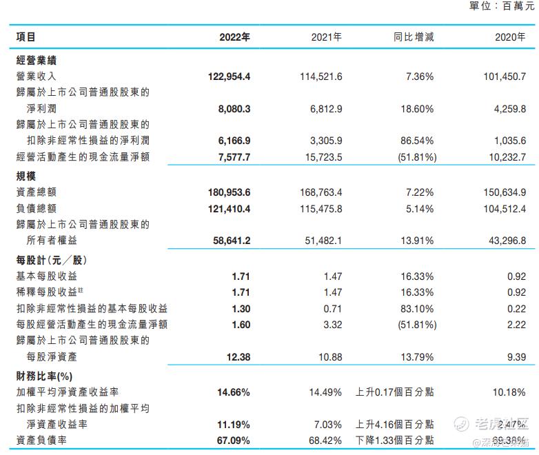 全年扣非经常性损益后净利润同比增长86.54%至人民币61.7亿元,基本每股收益为人民币1.71元。