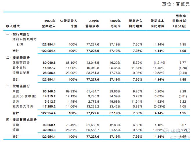 其中,运营商网络业务营收同比增长5.7%至人民币800.4亿元,受益于固网、核心网、服务器产品收入同比增长。