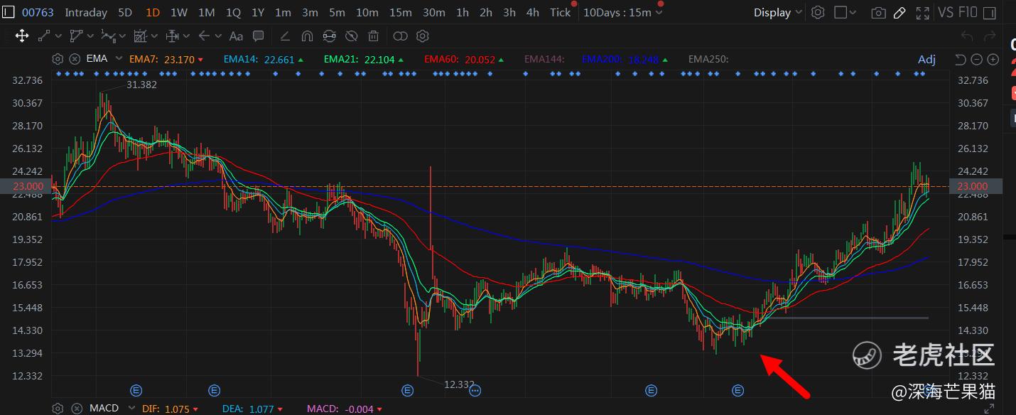 从价格行为上可以看到,2022年10月初的时候,中兴通讯(00763)出现触底反弹的迹象。