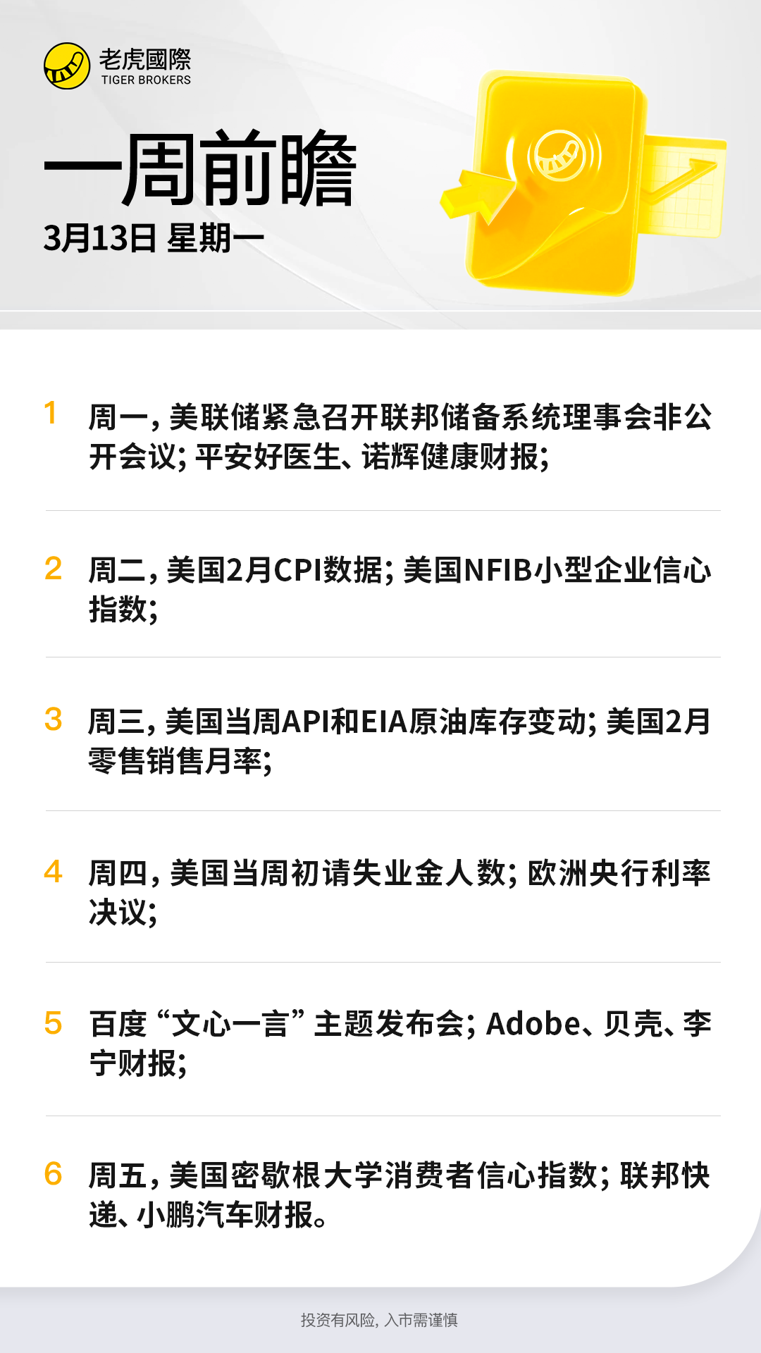 3月13日 周一关键词:美国谘商会就业趋势指数;美联储紧急召开联邦储备系统理事会非公开会议;平安好医生、诺辉健康财报