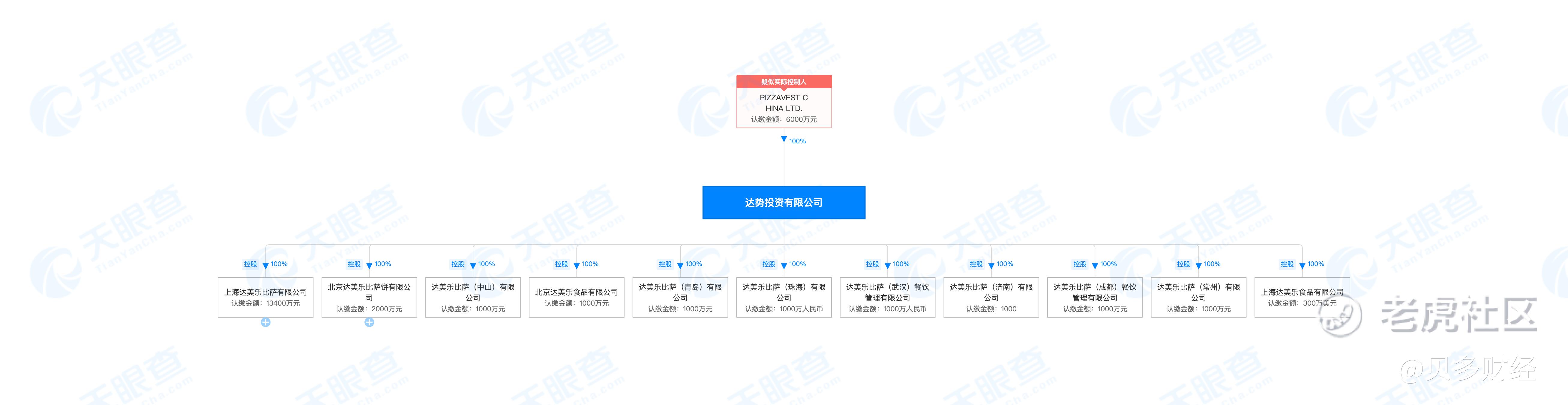 天眼查信息显示,达势股份的全称为达势投资有限公司,旗下公司包括上海达美乐比萨有限公司、北京达美乐比萨饼有限公司等。其中,北京达美乐比萨饼有限公司成立于1996年,当前的注册资本为2000万美元,法定代表人为霍力。