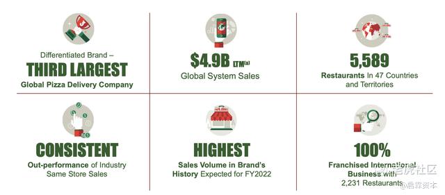 Papa John's(棒约翰) $棒约翰(PZZA)$ 是全美乃至全球比萨细分市场中第三大外卖连锁餐厅,已有近 40 年的历史。与前两者相比,棒约翰获得高估值的原因较简单,依靠的是稳健的门店扩张。