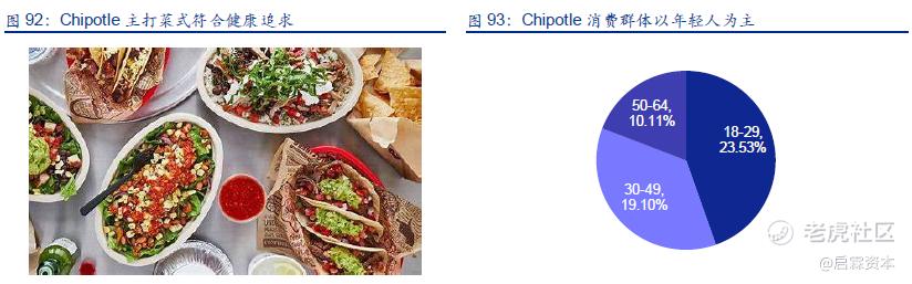 奇波雷墨西哥烧烤(Chipotle Mexican Grill) $墨式烧烤(CMG)$ 是风靡全美的墨西哥风味连锁餐厅,开创了美国休闲快餐厅(fast-casual)的运营模式,其获得较高的估值主要系年轻消费者+休闲快餐模式+健康饮食概念是餐饮行业新趋势: