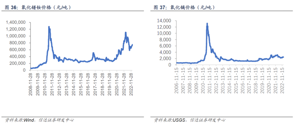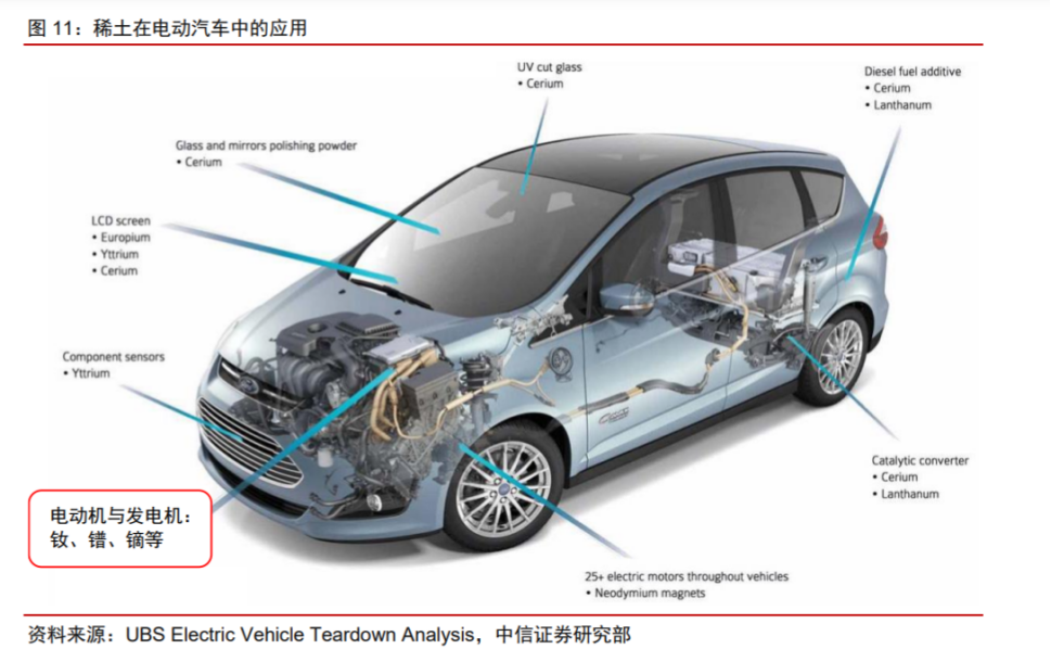 在特斯拉的带动下,钕铁硼材料成为新能源汽车驱动电机的主要材料,也成为推动稀土价格中枢抬升的重要力量。