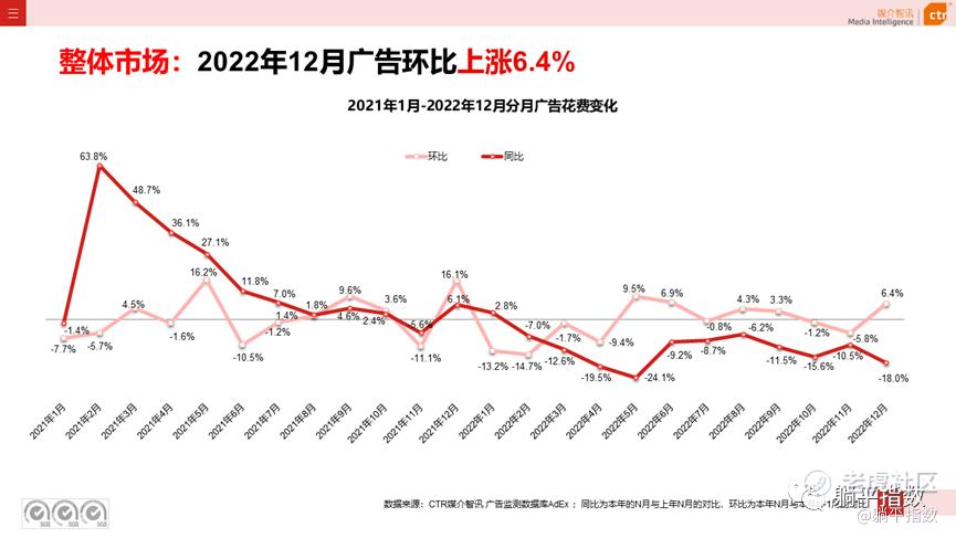 在中国,广告行业是一个存量竞争非常激烈的市场,根据CTR数据显示,2022年全年国内广告市场投放规模同比减少11.8%。分媒体来看,传统户外、报纸、影院视频广告收入明显下滑,电视、电梯、互联网广告虽有波动但表现强韧。分月份来看,开年以来市场持续下滑,环比降幅较明显,下半年整体市场有明显的回升迹象。