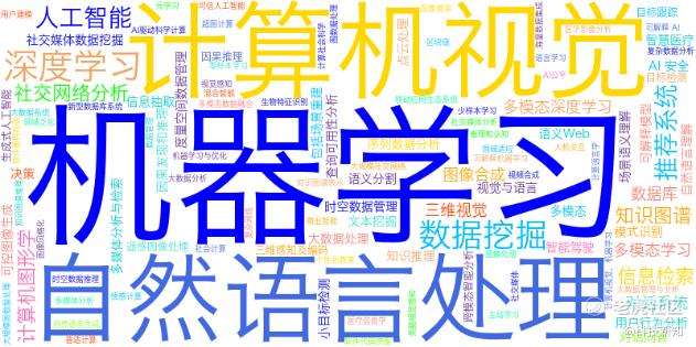 AI经典领域研究主题词云;AI交叉领域研究主题词云