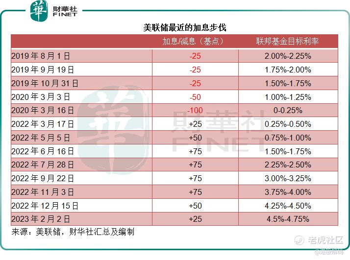 回想去年的这个时候,联邦基金利率还低至0,然而为了抑制通胀,美联储在2022年全年进行了7次加息,合共加息4.25个百分点,其中有四次加息75个基点。到2023年2月,由于看到众多经济数据有增长缓和下来的迹象,美联储终于将加息幅度由2022年末的50个基点削减一半至25个基点。