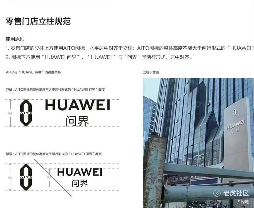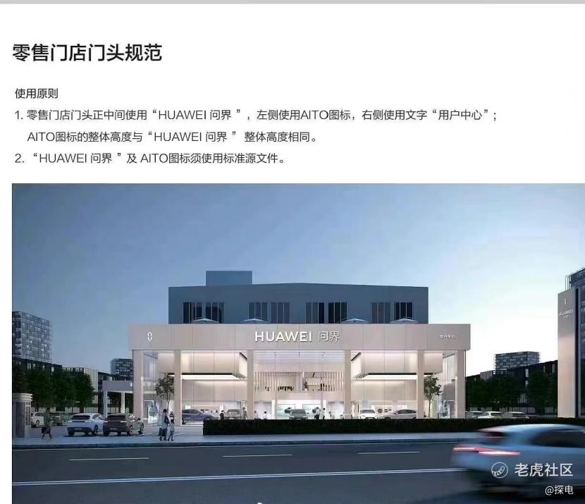 但是今天3月9日,HUAWEI问界还规范了车尾标志以及零售门店门头的规范,也就是都加上了HUAWEI的字样。