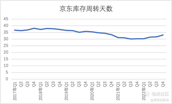 2022年京东库存总规模与往年持平,此时自营业务规模增速下滑到6.1%(Q4甚至陷入了几乎停滞的1.2%),此时库存周转效率保持稳定亦要求助于毛利率(2022年自营毛利率可能好于2021年,但比较有限)。