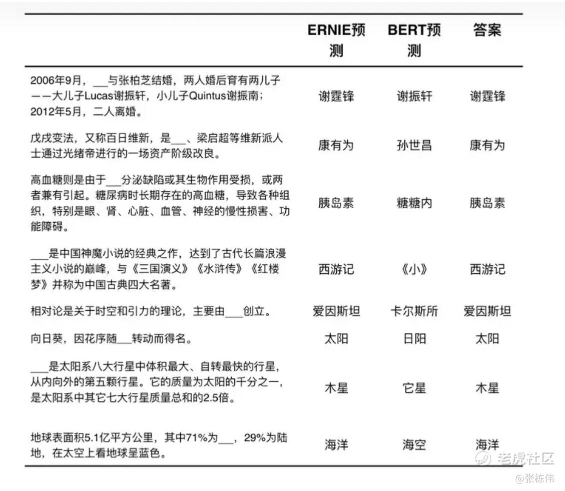 已经有多个网民大神,对比了谷歌的Bert 和百度的 Ernie的测试效果。