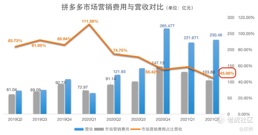 从财报数据也可以看出,拼多多在2019年发起百亿补贴之后,市场营销费用在一年内快速上升,之后则持续下降。