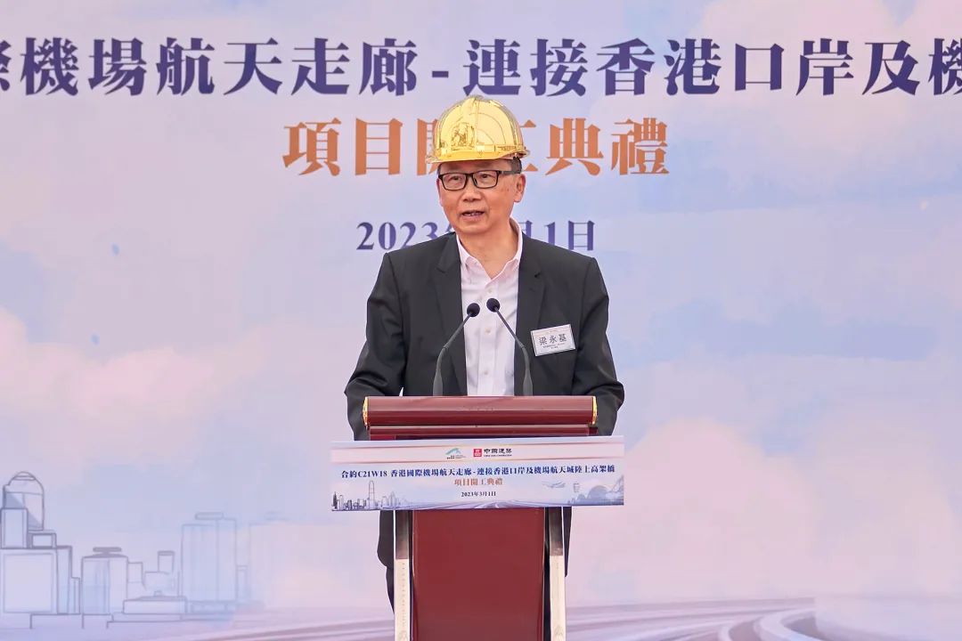 梁永基在致辞中对香港机场管理局航天走廊项目团队、中建香港建设团队及所有参与单位的付出表示感谢。他指出,香港机场管理局与中建香港有着良好的合作基础,期待中建香港继续发挥优良传统、精细管理,保证工程圆满完工交付。同时以此项目为基础,将“城市机场”打造成为“机场城市”,持续助力粤港澳大湾区互联互通,为巩固香港国际机场的国际航空枢纽地位做出贡献。