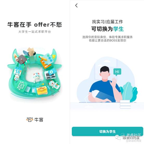 (左图为牛客的定位海报;右图BOSS直聘学生招聘专区)