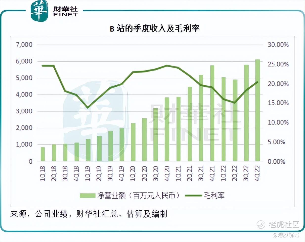 截至2022年12月31日止的第4季,B站的季度收入同比微增6.26%,至61.42亿元(单位人民币,下同),主要受到增值服务和电商及其他业务分别按年增长24.03%和13.07%所带动。